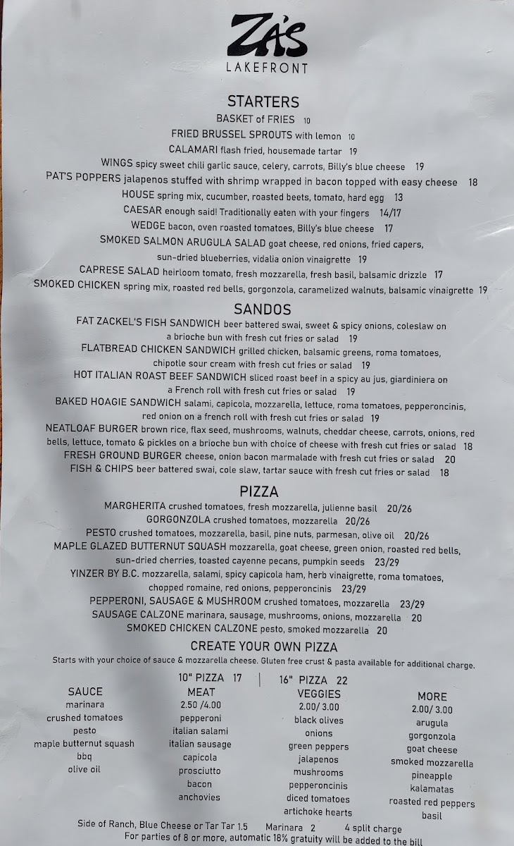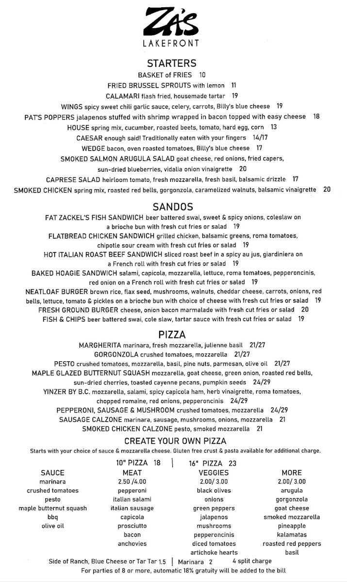 Come experience the magic of lakeside dining at Za's Lakefront, where every meal is a scenic escape!